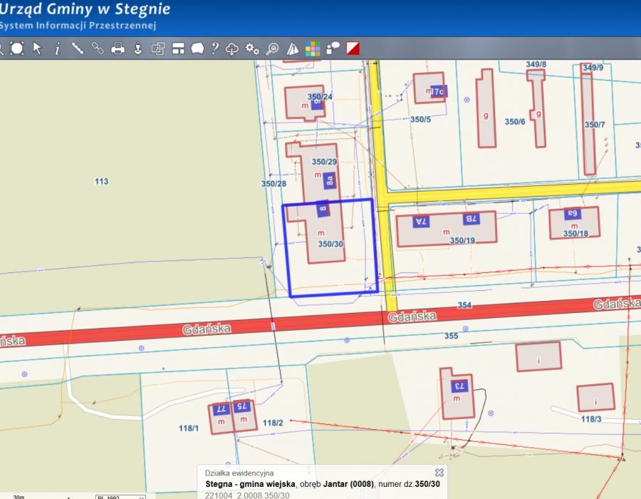 - działka o numerze ewidencyjnym 350/30 o powierzchni 771