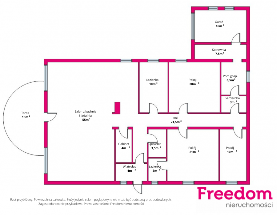 zabudową oraz sprzętem AGD i jadalnią – około 55 m2;
