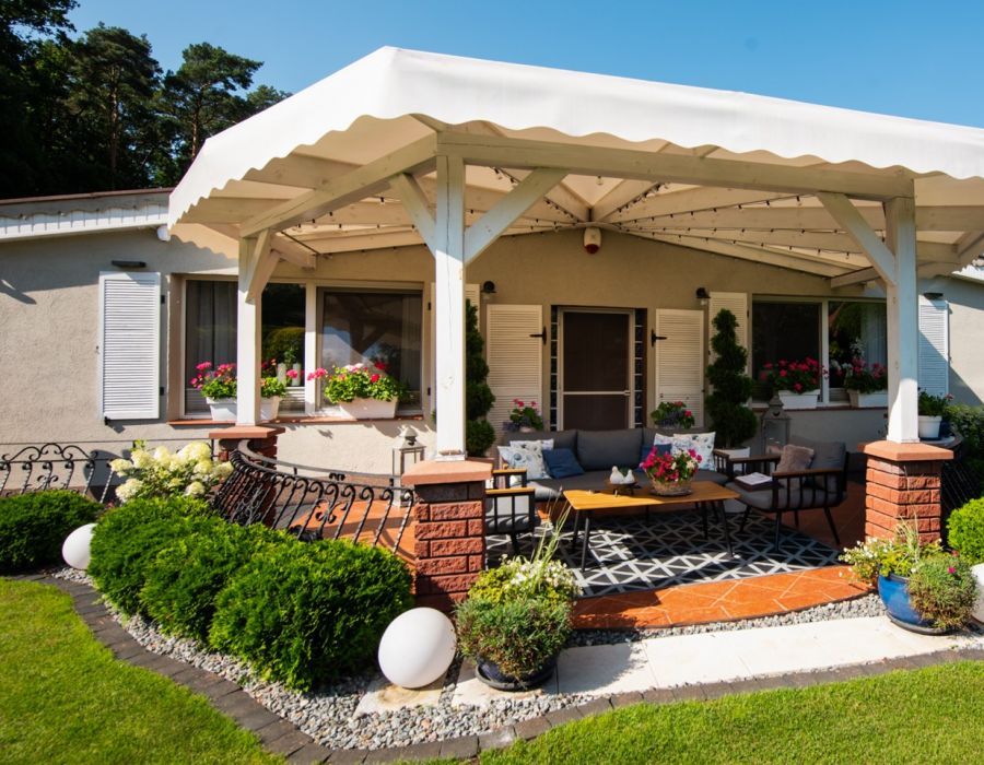 zadaszonego i oświetlonego tarasu o powierzchni około 16 m2;