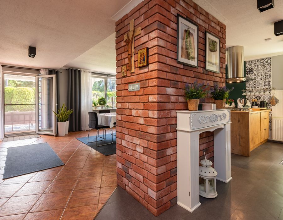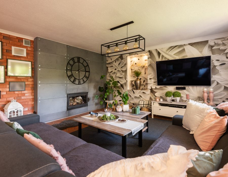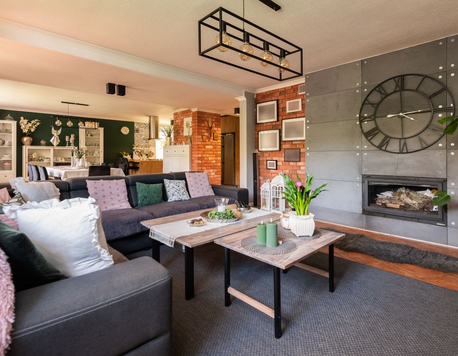 salonie z turbinowym rozprowadzeniem ciepłego powietrza w całym domu;
