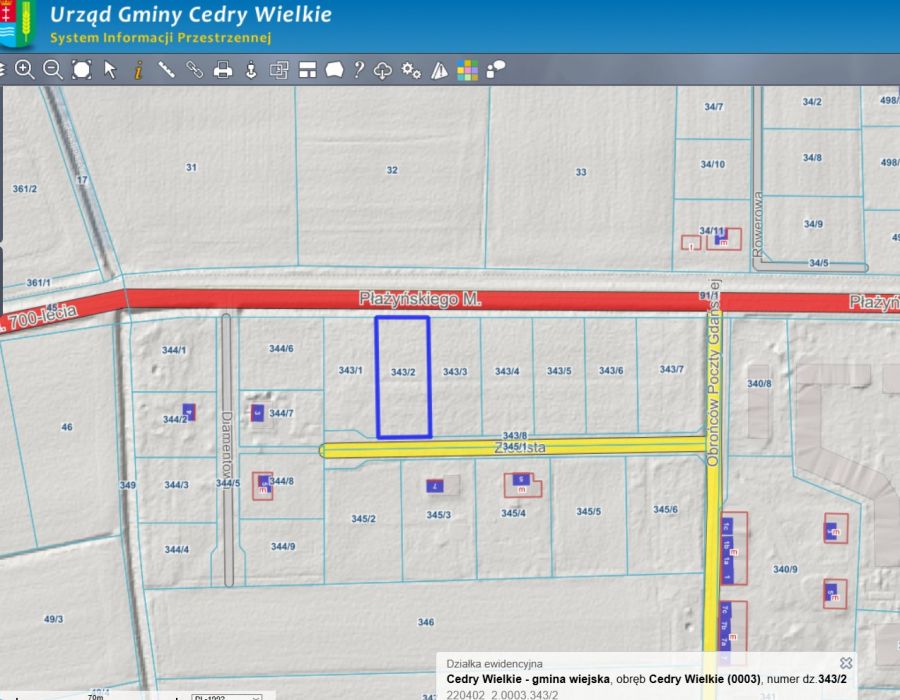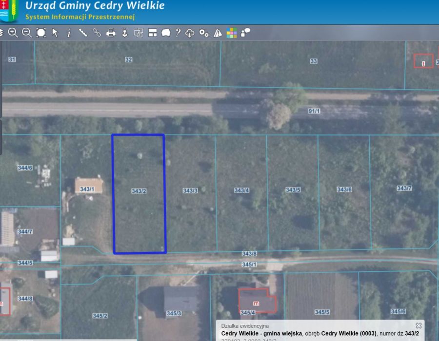 - działka nr ewidencyjny 343/2 – powierzchnia 1 221 m2,