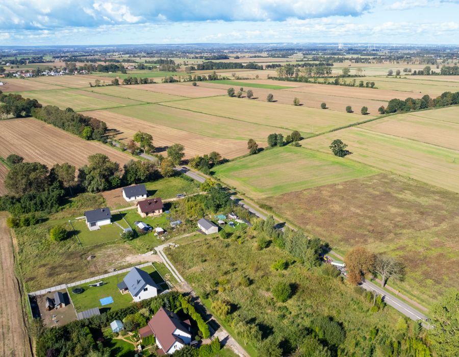 - sąsiedztwo pojedynczych domów jednorodzinnych i pól;
