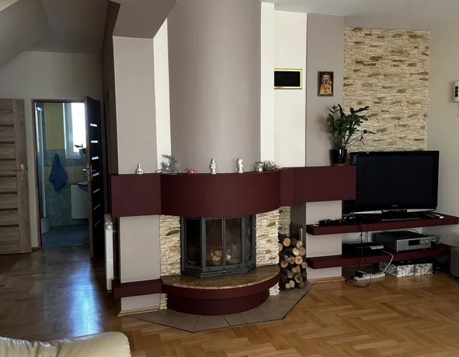 Został wybudowany w 2005 roku z wysokiej klasy materiałów, z myślą o komforcie mieszkańców. Dwupoziomowy budynek oferuje przestronność i przemyślany rozkład pomieszczeń, obejmujący 6 pokoi, w tym reprezentacyjny salon (30 m2) z kominkiem, pięć ustawnych sypialni, dwie garderoby oraz przestronną kuchnię z jadalnią, wyposażoną w pełną zabudowę meblową i nowoczesny sprzęt AGD.