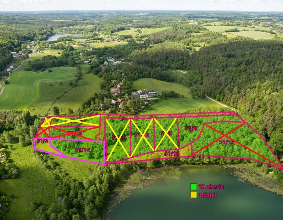- udział w działce 51/16 – bezpośredni dostęp do jeziora