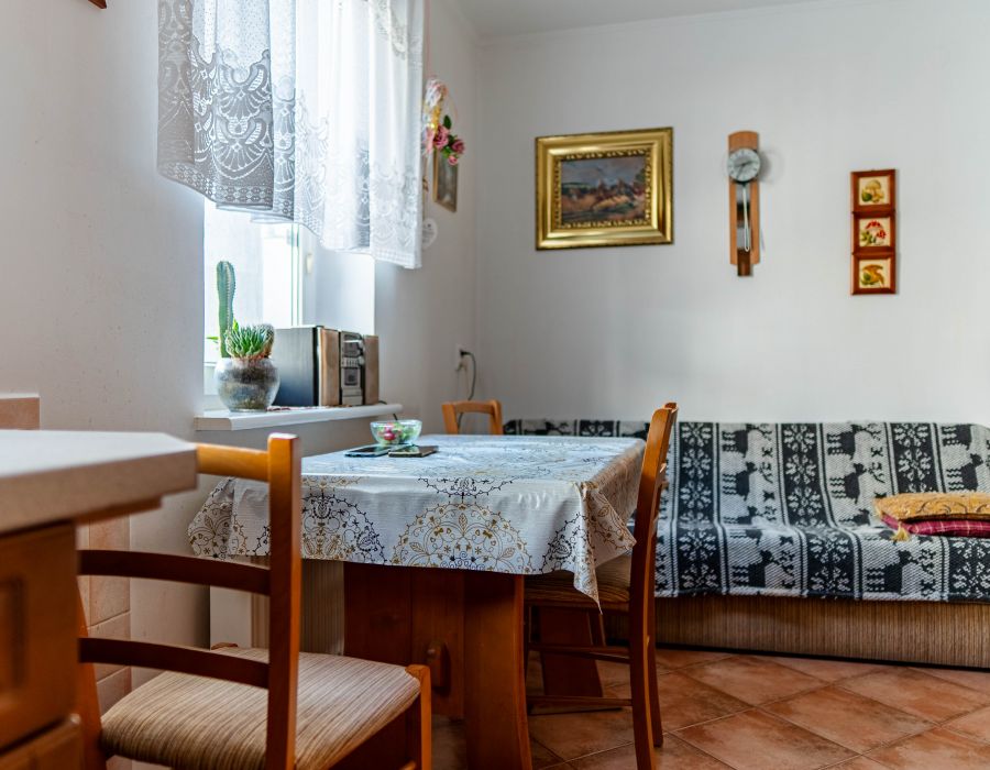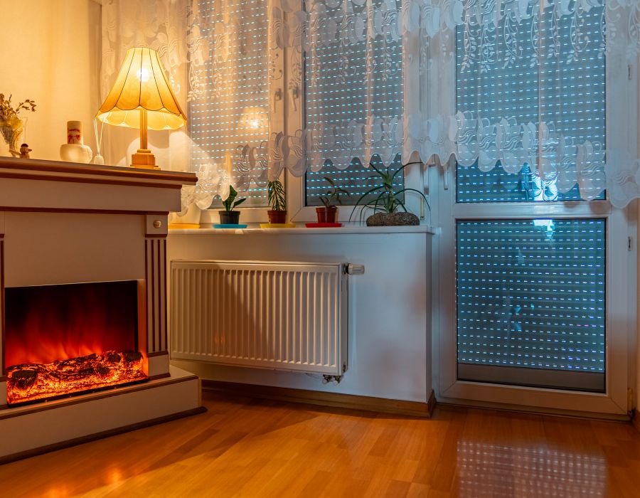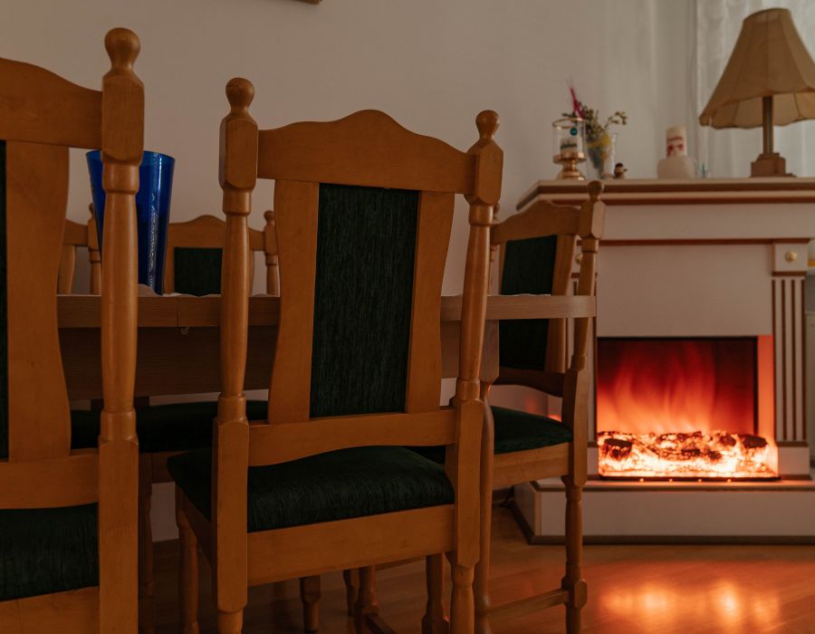 W pokoju dziennym znajduje się kominek elektryczny dodający wnętrzu uroku oraz klimatyzacja, która może stanowić dodatkowe źródło ogrzewania, lub zapewnić ulgę w najgorętsze dni lata.
