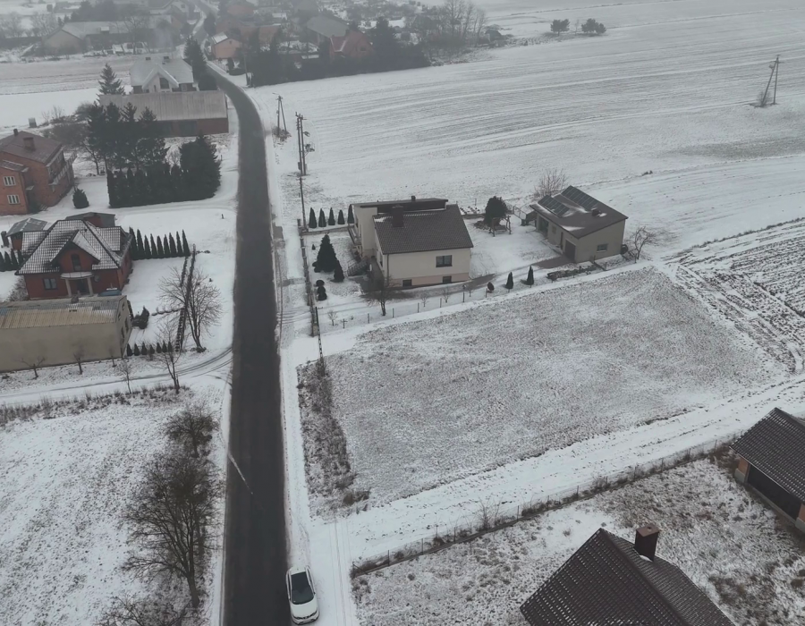 Regularny kształt i powierzchnia – co pozwala na optymalne wykorzystanie powierzchni i zapewnia funkcjonalność terenu wokół domu. Wymiary działki to 28,5mx42,1m.