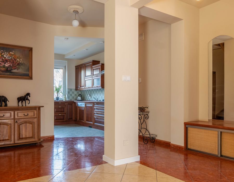 Dom oferuje 211 m² powierzchni całkowitej oraz 164 m² powierzchni użytkowej. Funkcjonalny rozkład pomieszczeń obejmuje dwie łazienki, oddzielną pralnię z suszarnią oraz komfortowy układ pokoi na piętrze, który gwarantuje prywatność wszystkim domownikom. To idealna propozycja dla większej rodziny lub osób ceniących przestrzeń i niezależność.