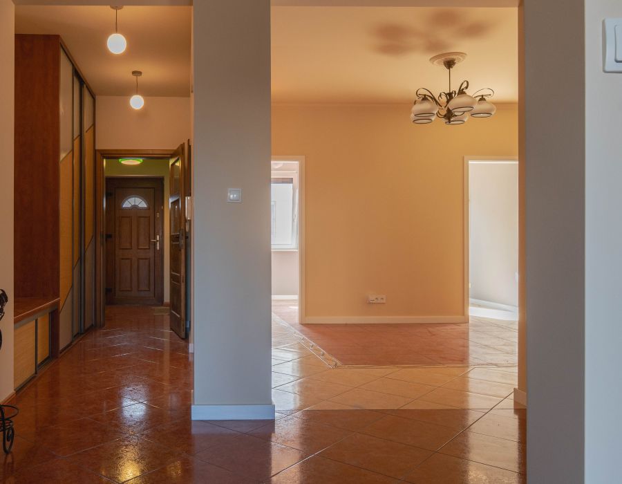 Każde pomieszczenie dostępne jest z holu, co zapewnia wygodę i prywatność.