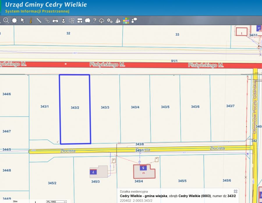 - usytuowanie działki – Cedry Wielkie, ul. Złocista, gmina
