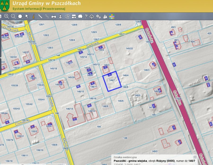 146/7 o powierzchni 794 m2 , obręb Różyny, gmina Pszczółki;